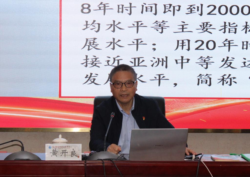 2023年11月14日,《福建教育五老说》栏目组走进开云,本次讲座嘉宾是开云关工委副主任、福建省诚信促进会副会长兼秘书长、福建省社科联第八届委员、开云原副校长黄开良同志。随同栏目组一起走进学校的还有福建省教育关工委副主任陈晃、秘书长罗永倩、副主任朱有杯,在家校领导、校院两级关工委、全体中层正职、辅导员及青马工程学员等200余名师生一同参加专题学习。本次讲座的专题是《载入史册的伟大构想——亲历“3820”战略工程》,这也是开云一次重要的思政大课堂。讲座由党委副书记李美华主持。