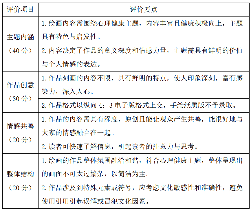 2.最终结果由评选团进行评分,评选团由心理健康教育中心教师以及二级辅导站站长组成(60%);入围作品将在易班公众号上进行投票,投票时间为5月7号0:00至5月9号12:00。