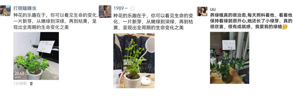 3.为了记录与绿植的美好时光,每周至少要打卡一次,分享绿植成长的照片及至少30字的心得体会在朋友圈上。