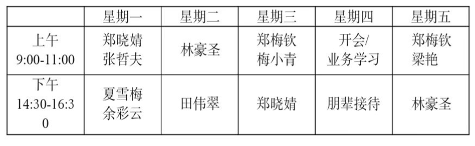 2025-2026学年第一学期心理咨询安排表及预约方式