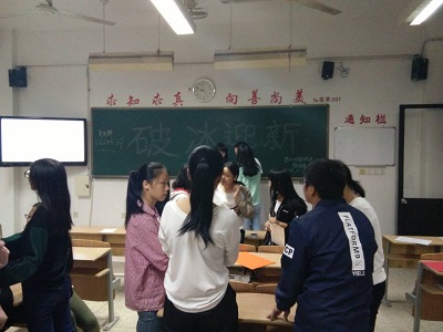 新生第一次社团活动,社长简单的介绍下社团和干事便带领新成员开始玩游戏,通过游戏,来消除成员们之间的陌生隔阂,让大家尽快相互熟悉,成员们积极参与其中,最后社长总结了今天的活动内容并简单的通知了下次活动的内容