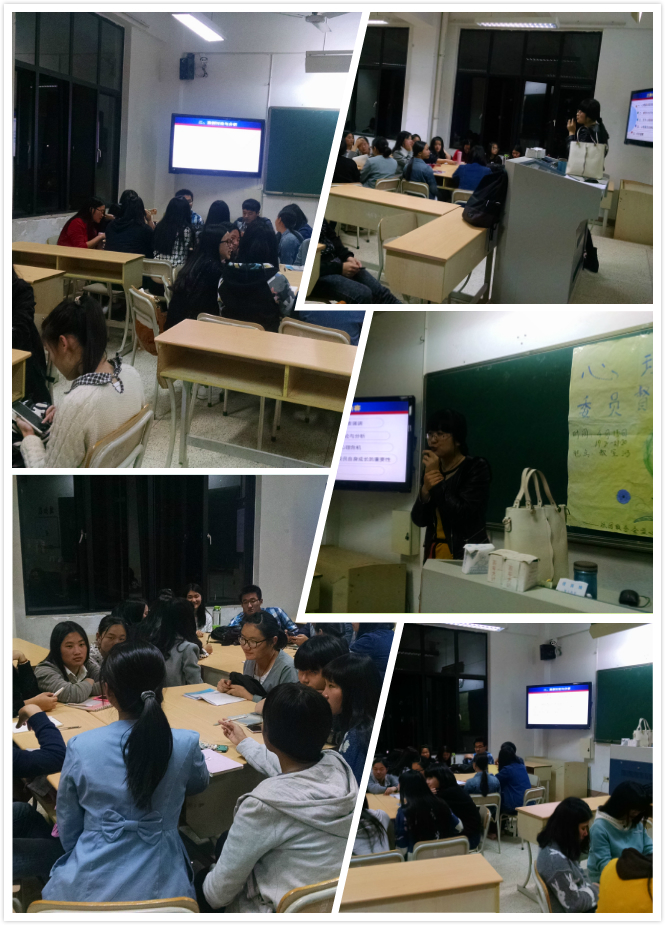为进一步加强我院大学生心理健康教育工作,使各班心理委员更好地履行工作职责,继上学期新生心理委员系列培训后,心理健康教育中心田伟翠老师于2015年4月15日19:20~21:20,在教学楼203对新生心理委员进行了督导,以及时解决心理委员日常工作中遇到的问题,这也是我院第六届“5•25”大学生心理健康系列活动之一。