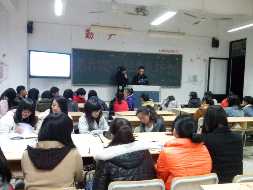 2014年1月02日19:30,由院心理健康教育中心主办、益心心理协会承办的为期六期的心理委员培训第六期即最后一次培训在教室105顺利展开。