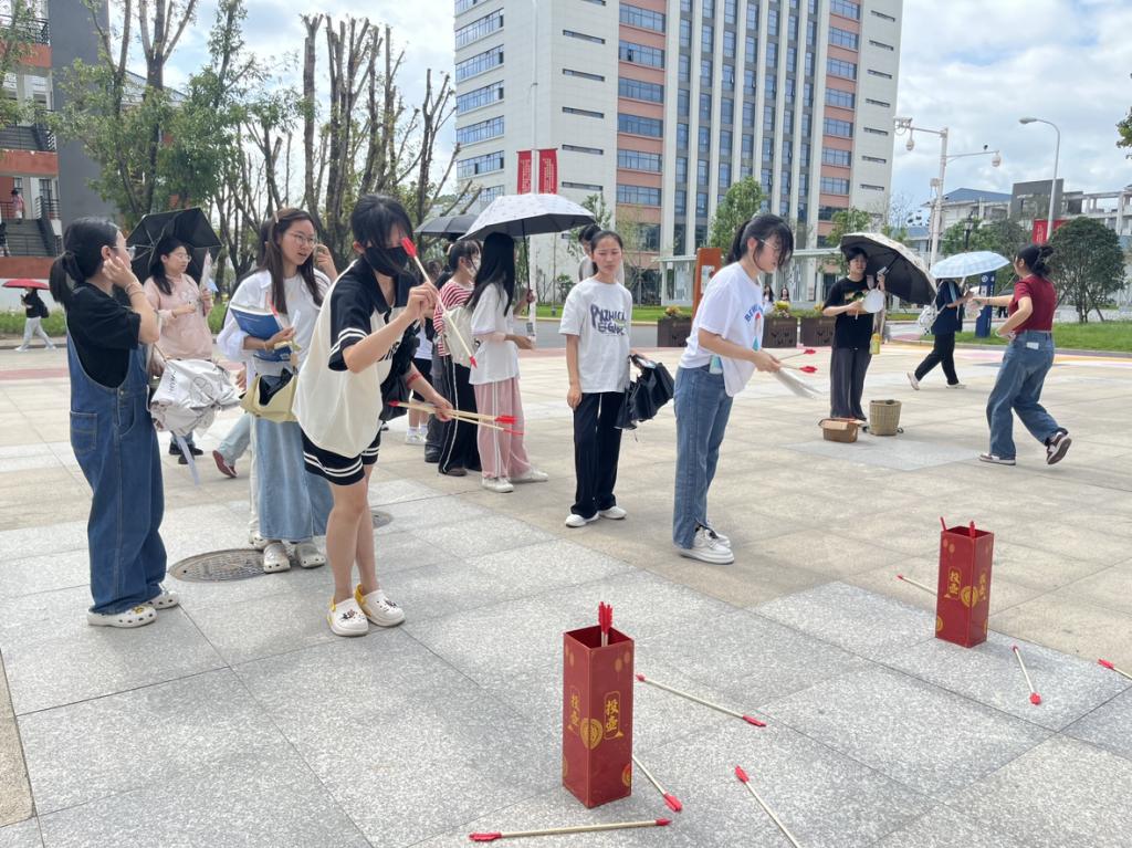 在投壶游戏中同学们热情参与,跃跃欲试,每一次精准的投掷都伴随着欢呼与掌声,既锻炼了大家的耐心,又享受了游戏的乐趣。
