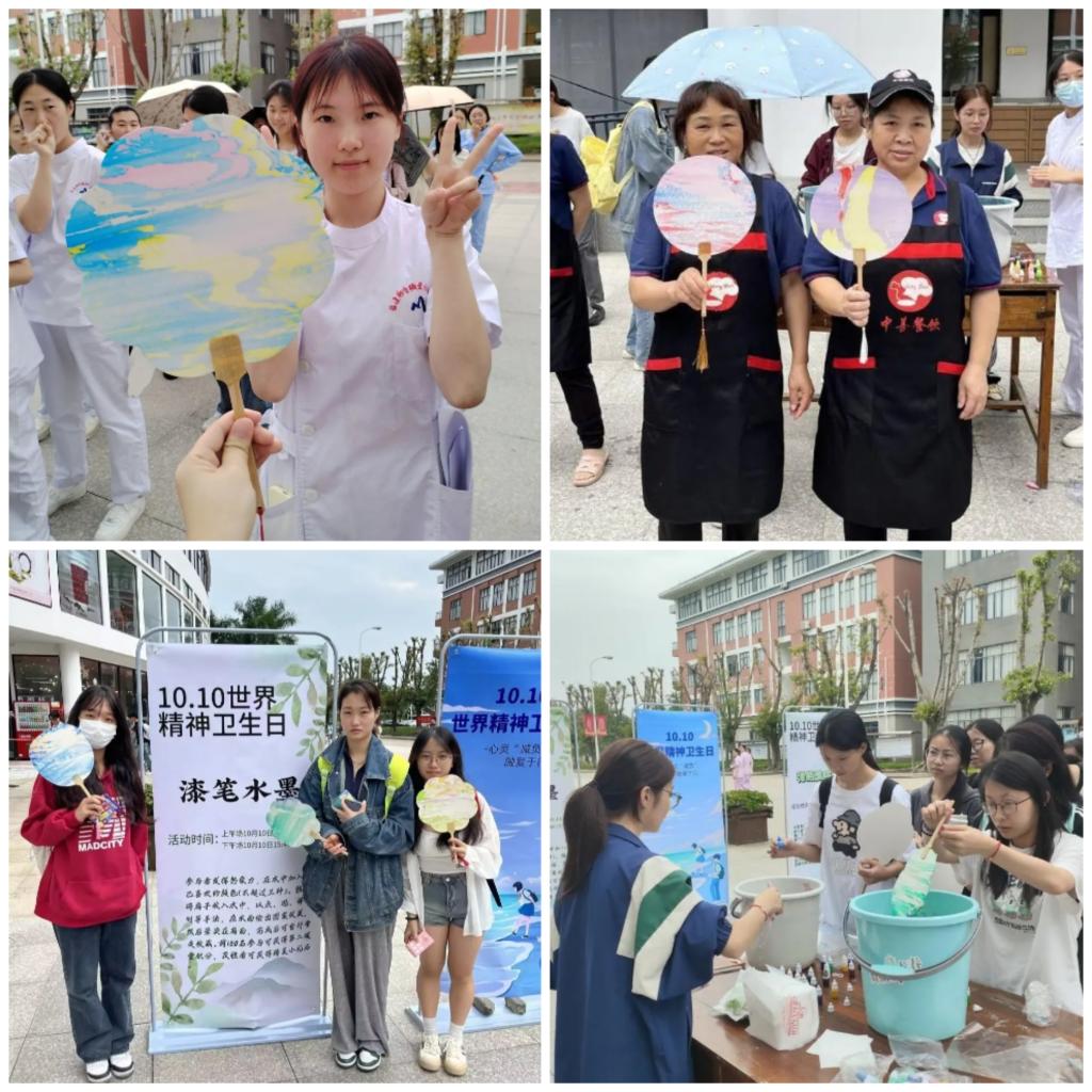 在本次活动中,同学们仿佛进入了五彩斑斓的创意世界。挑选自己喜欢的三种颜色并将其滴入水中,随后把扇子轻浸入水,手持画笔,在扇面上舞动,这是一场色彩的舞蹈。紧接着灵巧地运用“点、甩、弹、划”等独特手法,绘出一个个鲜明的、别具一格的图案。在此环节中,我们将收获自己绘出的唯一之扇,收获“10·10”最独特的纪念品。