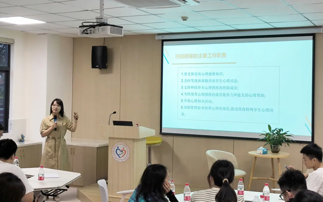最后,福建中医药大学大学生心理健康教育指导中心心理咨询师杨利利老师开展题为《学院心理辅导站建设及活动的开展》的主题授课。通过特色朋辈辅导育人模式、心理育人工作网络、心理委员的作用等多方面进行工作经验与先进模式的分享,提升辅导员心理育人工作能力。