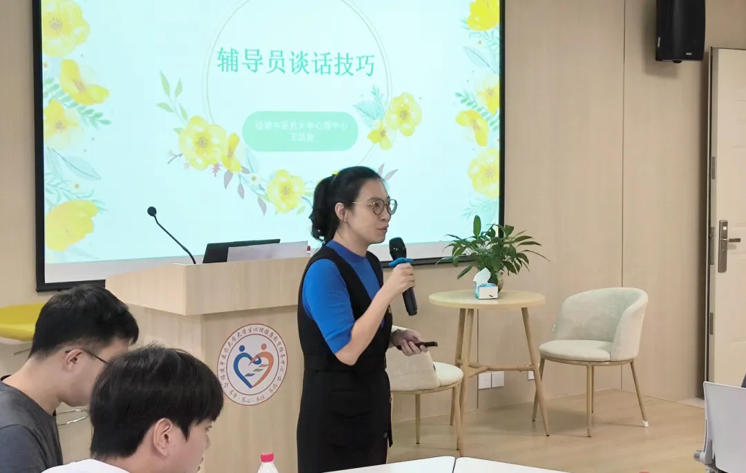 接着,福建中医药大学心理健康教育指导中心副主任王凯旋副教授开展题为《辅导员谈话技巧》的主题讲座。讲座从与学生谈话前的准备、学生情况评估的简易方法、实用的学生谈话技巧及情景演练等方面入手,融合理论与实操,实用性强。