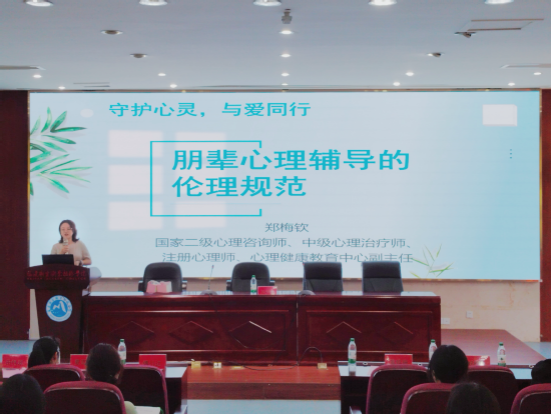 郑梅钦老师首先进行《朋辈心理辅导的伦理规范》主题讲授。她以真实朋辈互助案例切入,搭建伦理框架并解读八大准则与戒律,强调坚守伦理是信任核心,助力同学们专业且有温度地助人,切实守护同伴心灵健康。