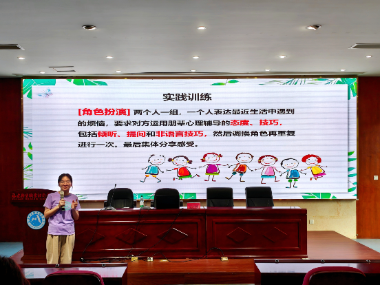 本次共开展6场主题讲座,内容涵盖朋辈心理辅导的伦理规范、班级心理委员概述、大学生心理问题的初步鉴别、识别心理危机信号、朋辈心理辅导的实务操作、心理健康教育主题活动的设计与组织等。
