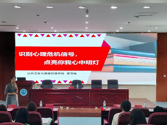 夏雪梅老师进行《识别心理危机信号,点亮你我心中的明灯》主题授课,她深入剖析心理危机信号的具体特征,让同学们学会精准识别危机信号,懂得按照危机干预流程冷静地处理事件。