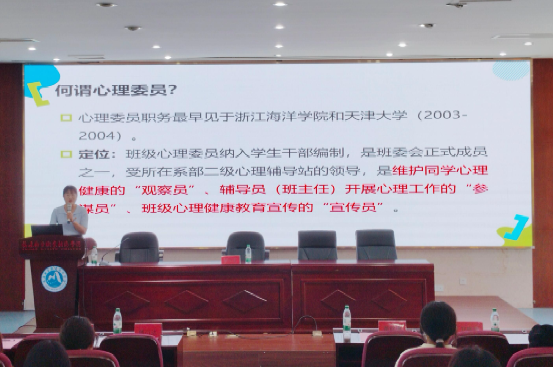 田伟翠老师随后带来《班级心理委员概述》主题授课,她围绕何谓心理委员、工作重要性等要点,为心理委员构建清晰工作认知体系,让同学们明确自身在班级心理健康工作中的关键作用,进而增强心理责任感,提升心理帮扶能力。