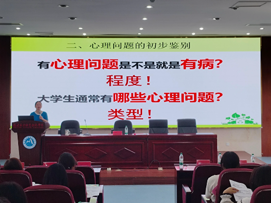 余彩云老师凭借丰富的工作经验,为大家开展《大学生心理问题的初步鉴别》主题授课。她结合实例,让同学们直观认识常见心理问题的早期迹象,纠正了一些错误认知;还亲自示范鉴别方法与沟通技巧,使同学们在面对心理困扰时,更具应对的信心和能力。
