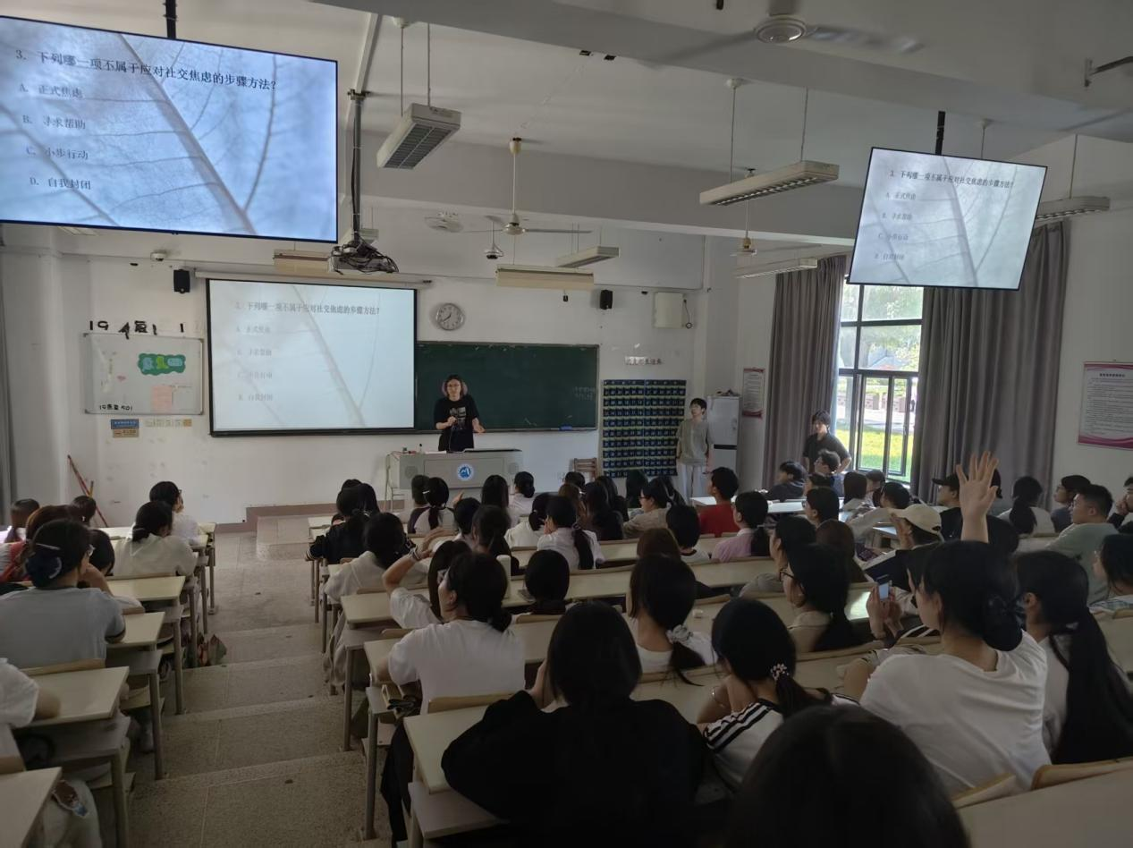 活动现场,演讲者结合校园场景,向同学们解读了社交焦虑,指出它并非单纯害羞,而是在社交或被关注时产生的强烈恐惧,会影响学习、交往与表达。演讲者分享了调整负面想法、逐步直面社交场景、用小行动突破困境的方法,还介绍了正念冥想等简易放松技巧,引导大家接纳情绪、缓解紧张。同时通过真实案例鼓励大家:先接纳自己,再勇敢尝试,逐步建立自信。