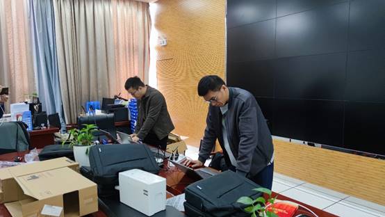 为方便疫苗接种工作人员,现教中心在两周前就着手相关配件选型与测试,为每台笔记本电脑配置外接显示屏与键盘鼠标,做好系统软件适配。