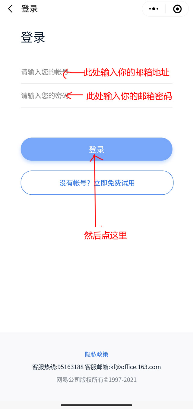 2、依次点击下方的导航栏的“登录”-“收件箱”,输入账号密码、短信验证码即可登录邮箱。