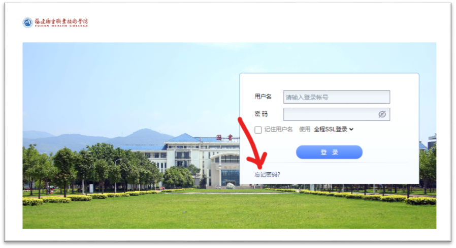 用浏览器访问学校官网,点击右上角的“邮箱登录”进入邮箱登录页面。点击邮箱登录页面的“忘记密码”,然后按提示操作。