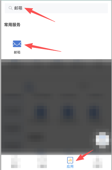 登录方法三:打开学校APP,点击下方的“应用”,再搜索“邮箱”,点击“邮箱”图标。