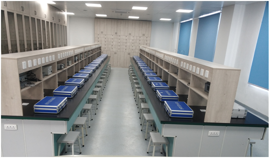 智能医疗装备技术实训基地于2020年获评福建省高水平专业化产教融合实训基地,所在专业于2021年获评福建省“双高”建设专业群。该实训基地建有医用电子仪器实训室、医用电子仿真实训室(计算机实训室),配备有医用电子线路实验箱、心电图机实验箱、数字化医疗仪器实验箱、单片机开发实验箱、嵌入式系统开发实验箱、医用传感器实验箱、电路基础实验箱、模拟电子技术实验箱、数字电子技术实验箱。电工职业资格考证实训室和1+x集成电路开发与测试实训室(摩尔工坊)目前正在建设中。同时可共享使用医学影像基地、医学检验实训基地和眼视光技术实训基地之实训室及相关设备。