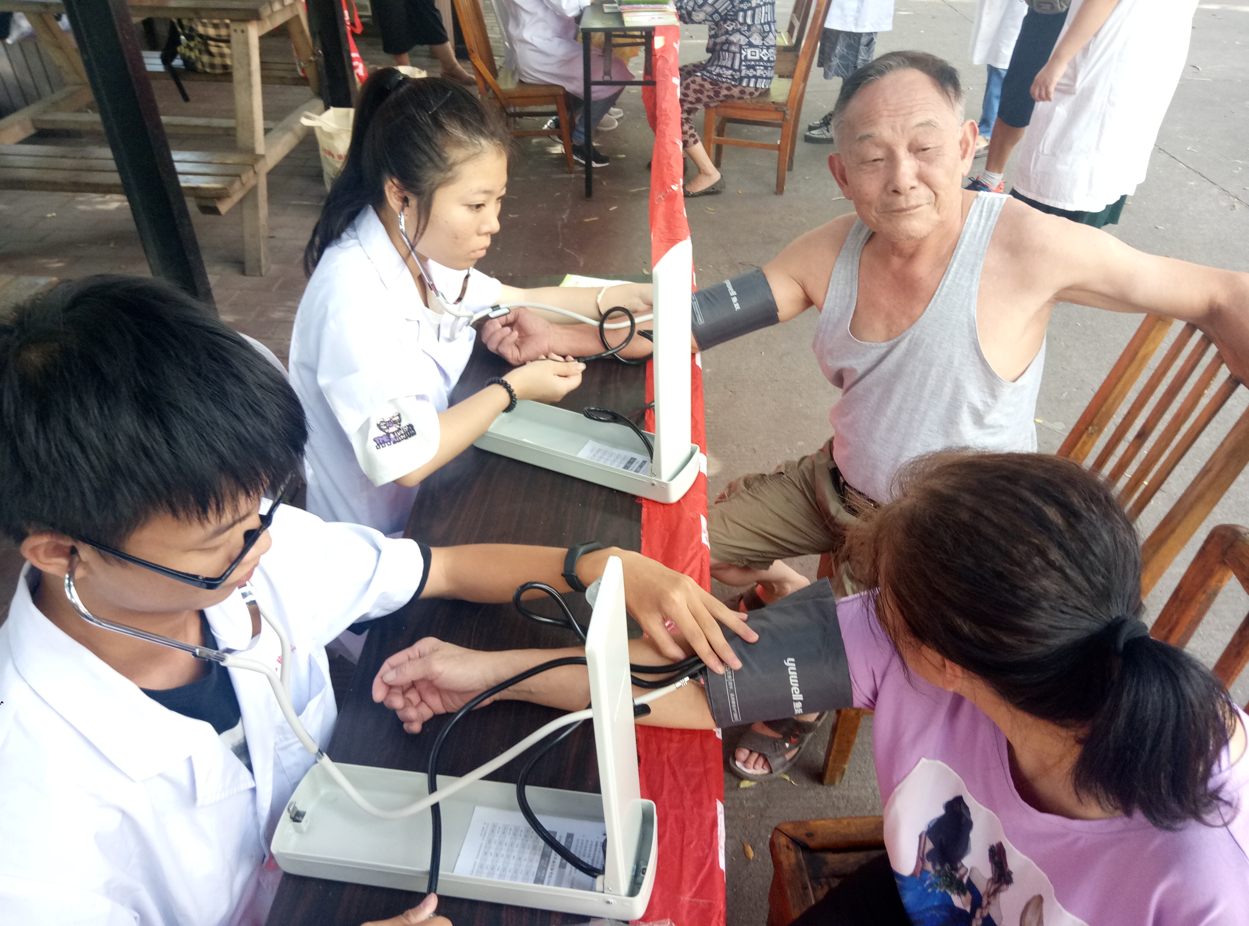 本次活动吸引了许多社区居民的积极参与。党员教师向社区居民们认真讲解了高血脂防治知识和献血的各种益处,让居民们充分认识到献血不但有益身心健康,还能为社会做贡献。与此同时,同学们热情而专业地为居民们测血型、量血压,并嘱咐高血压的居民们应该注意的事项。洪山桥社区居民为老师、同学们的专业解答、周到服务表示赞许。