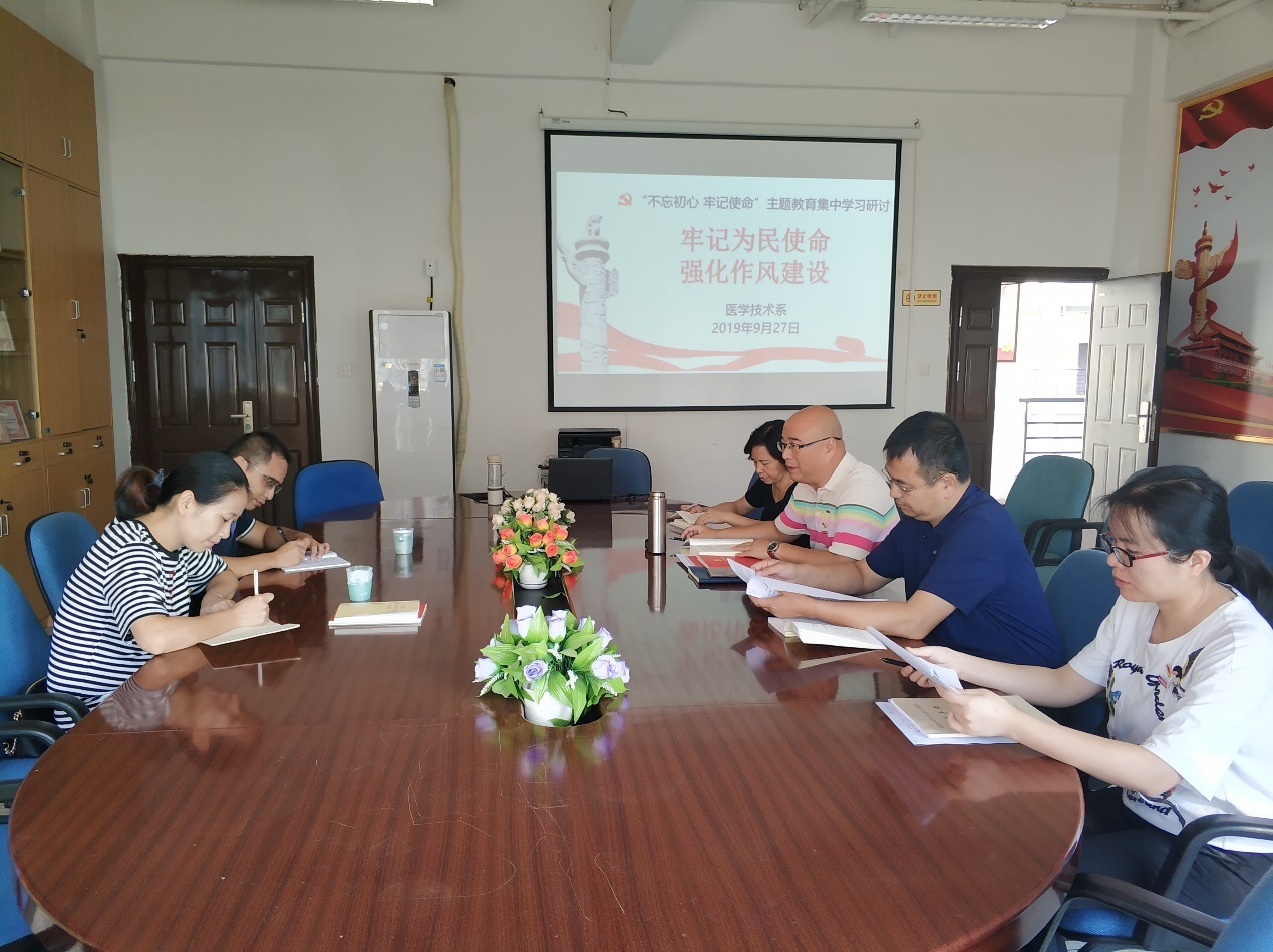 9月27日,医学技术系党总支在系部301会议室开展“牢记为民使命,强化作风建设”专题第一场学习研讨。本次会议由医学技术系党总支负责人邱滚忠同志主持,医学技术系领导班子参与,学院巡回指导六小组成员临床医学系党总支副书记陈洁、组织员叶家涛列席。