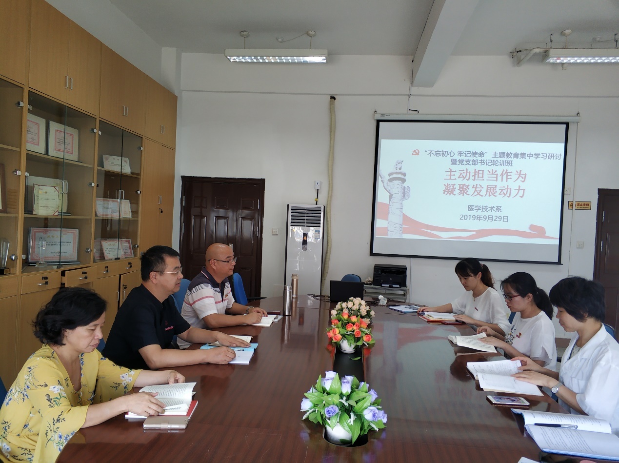 9月29日,医学技术系党总支在系部301会议室开展“主动担当作为,凝聚发展动力”专题第一场学习研讨。本次会议由医学技术系党总支负责人邱滚忠同志主持,医学技术系领导班子及各党支部书记共同参与。