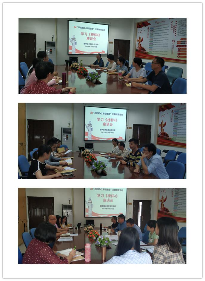 为加深学习榜样的效果,10月22日至24日,医学技术系第一、第二、学生党支部分别开展了《榜样4》学习集中座谈交流会。座谈会上,党员教职工表示,从张富清、黄文秀等优秀共产党员身上,看到了初心坚定、担当有为,感受到了榜样的引领力量,节目中的榜样人物给我们上了一堂生动的人生示范课。大家还表示,学习榜样精神,就是要见贤思齐,要扎根自己的教育岗位,在实干中践行初心使命,在新时代接力奋斗。