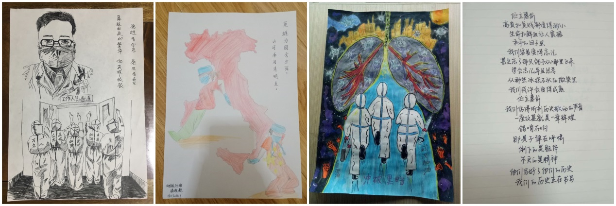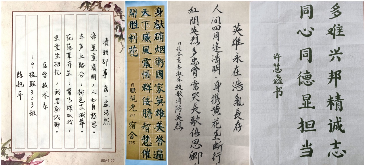 入党积极分子学生和同学们一起,开展书法、绘画以及传统非遗艺术作品创作,通过书画作品体现慎终追远、礼敬英雄的情怀,表达对英烈的缅怀和纪念,并向奋战在一线的医护人员与为社会作出贡献的人民致以崇高的敬意。