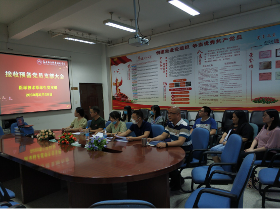 2020年6月30日和7月1日, 在党的99岁生日之际,医学技术系第一党支部、第二党支部、学生党支部分开召开了接收预备党员大会,接收19名师生为预备党员。