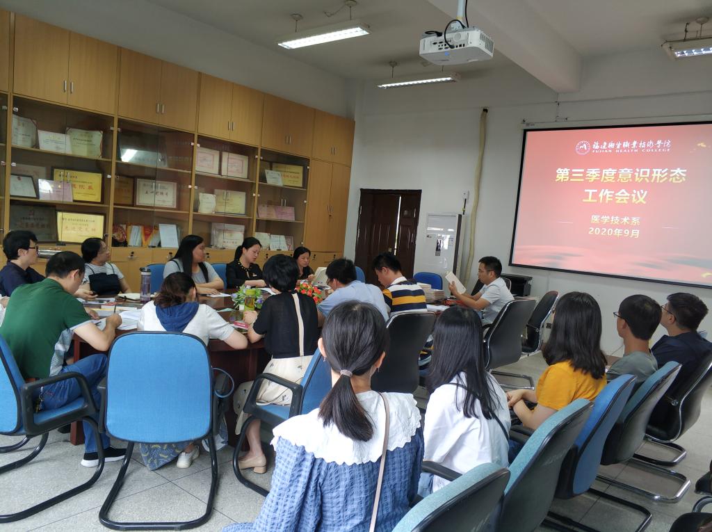 9月24日,医学技术系在系部301会议室召开2020年第三季度意识形态工作会议。医学技术系领导班子、党总支委员、各党支部书记、教研室主任、实训中心主任、团总支书记、系部人员、辅导员等参加了此次会议,会议由医学技术系党总支书记陈俊颖主持。
