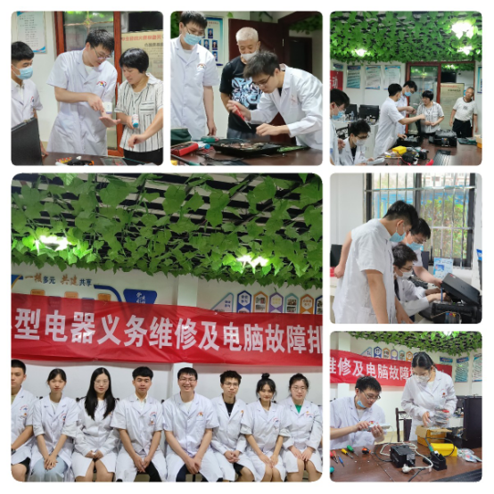 设备维修,排除故障,很便民。医学技术系“双带头人”党支部书记钟伟雄带领智能医疗装备技术专业的师生,利用专门维修设备,为社区居民检修打印机、体温测量仪、话筒、排插、电磁炉等日常办公和生活家电。精湛的维修技术让一个个小故障迎刃而解,“这些学生们很专业很厉害呀”,社区大姐满意地点赞。