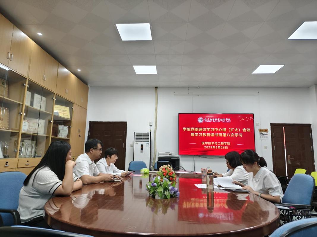 6月26日,医学技术与工程学院举行党委理论学习中心组(扩大)会议暨深入贯彻中央八项规定精神学习教育读书班第八次学习,主要深入学习习近平总书记重要讲话重要指示重要文章精神,学习关于作风建设的重要党内法规,传达学习教育相关文件精神等。学院党委书记柯琼莺主持会议,院长翁绳和、党委委员参加学习。
