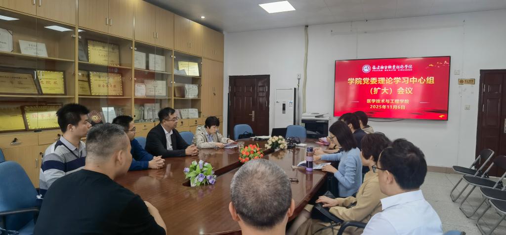 11月6日,医学技术与工程学院举行党委理论学习中心组(扩大)会议,深入学习党的二十届四中全会精神、习近平总书记给天津大学和中国农业大学全体师生重要回信精神;深刻领会习近平总书记在庆祝中华人民共和国成立76周年招待会上的重要讲话精神、习近平总书记在二十届中共中央政治局第二十二次集体学习的重要讲话精神、习近平总书记参加新疆维吾尔自治区成立70周年庆祝活动时的重要讲话精神;系统研读习近平总书记重要文章:《推动落实全球发展倡议、全球安全倡议、全球文明倡议、全球治理倡议》、《中华民族共同体的形成和发展是人心所向、大势所趋、历史必然》等。会议由学院党委书记柯琼莺主持,院长翁绳和、学院党委委员、党支部书记、教研室主任参加学习。