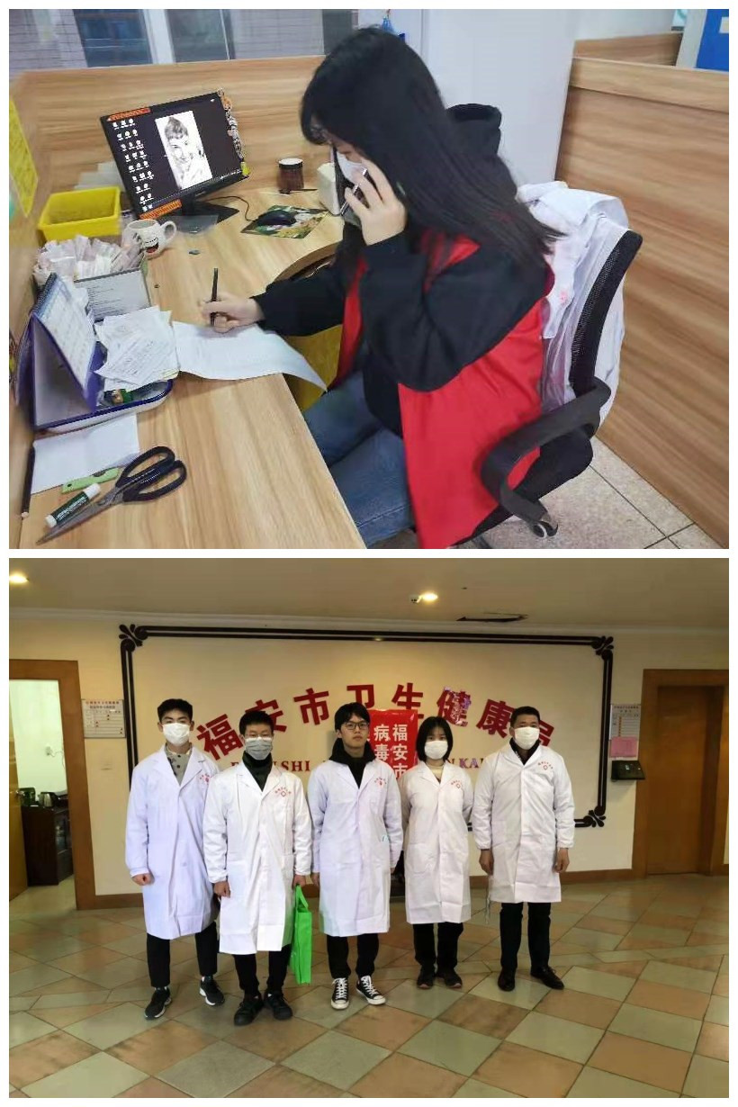 “惟愿诸君将振兴中华之责任,置之于自身之肩上”这是孙中山先生对中华青年的殷切希望。疫情来袭,涓涓细流汇聚成海,疫情当前爱心从不缺席,我们年轻的学子亦不曾退却。寒假期间,我们同学们都在积极参加志愿服务,共同守望家园。16检验501叶蕾同学成为了福州市晋安区桂香苑的疫情防控志愿者,为进入小区的人员量体温、登记信息、做好消毒工作、收外卖快递等;18检验304 陈立群在漳州市台商投资区角美社区卫生服务中心,参加对湖北籍及出入疫区或与NCP患者接触者电话排查、协助疫情相关信息整理、参与防疫物资管理和发放等工作;19影像302温梓杰同学加入福安市青年志愿者服务队,到福安市高速公路南站口为进入车辆上的人员测量体温……