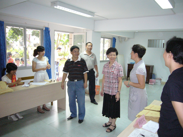 报到当天,彩旗招展,“丹桂飘香共祝美好明天” 的火红条幅迎风飘悬。我系将报到处和咨询处置于7号学生会议室,并用红榜张贴新生名单、报到流程图、缴费说明、学籍说明等,为新生及家长提供方便快捷的服务。