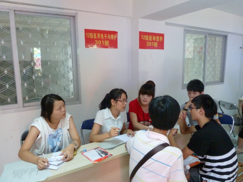 2012年9月9日,医学技术系喜迎来自福建、广东、安徽、甘肃、贵州、江西、四川、云南等各地的新生。为做好迎接新生报到工作,系部领导制定了详细的迎新计划,指导行政秘书、辅导员准备工作,并对青年志愿者进行迎新培训。