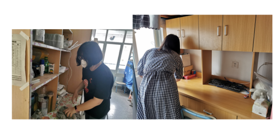 宿舍内外都有老师们辛勤的背影,他们弯着腰,撸起袖子,不怕脏不怕累,用抹布仔仔细细的将桌椅、窗户、床架柜子等擦拭一遍,不放过任何一粒灰尘;厕所、浴室、阳台、走廊......只为同学们返校时能有个整洁的宿舍环境。看到每个老师挥汗如雨、不辞辛苦的做好打扫工作,邱书记鼓励大家说:“只要能让同学们返校时住进干净整洁的宿舍,感受学校对他们的关心和关爱,哪怕我们再苦再累,流再多的汗也是值得的。”