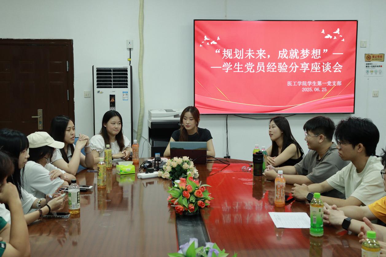 为充分发挥学生党员的先锋模范作用,引导同学们科学规划学业与职业发展,6月25日,医学技术与工程学院学生第一党支部开展“规划未来,成就梦想”学生党员经验分享座谈会。来自不同专业的优秀学生党员代表,凭借丰富的实践经历,围绕校园生活多样化、创新创业实践以及专升本备考等热点话题,分享了他们的宝贵经验和深刻感悟。