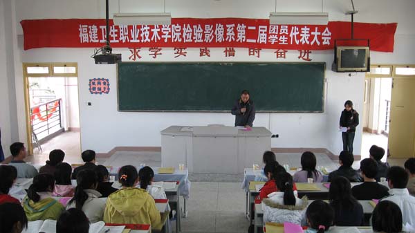 2007年3月20日下午,经过筹备委员会和广大同学的共同努力,共青团检验影像系第二届代表大会、检验影像系第二届学生代表大会在检验影像系第二阶梯教室胜利召开。学工处郑力宏处长、黄铭珊副处长、教务处唐荣耀处长、院团委邱滚忠书记、院学生会主席等应邀出席了大会,部分兄弟系(部)党总支书记、团总支书记、学生会主席列席了会议。参加会议的还有检验影像系马少宁主任、兰宝金书记、郭礼坚副主任以及各班辅导员、专职班主任。出席本次大会的检验影像系团总支委员候选人9名,团员代表71名,学生会委员候选人18名,学生代表77名。