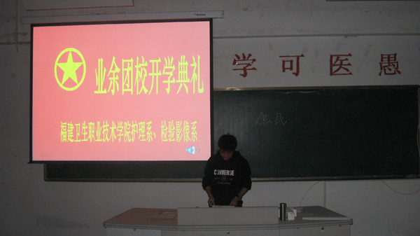 2009年2月23日下午,检验影像系第四期业余团校开学典礼在系部第一阶梯教室举行。本期业余团校与护理系合办,系团总书记周微琳老师、护理系团总支书记钟奇志老师、护理系辅导员赖文金老师以及两系共79名业余团校学员出席了本次开学典礼。