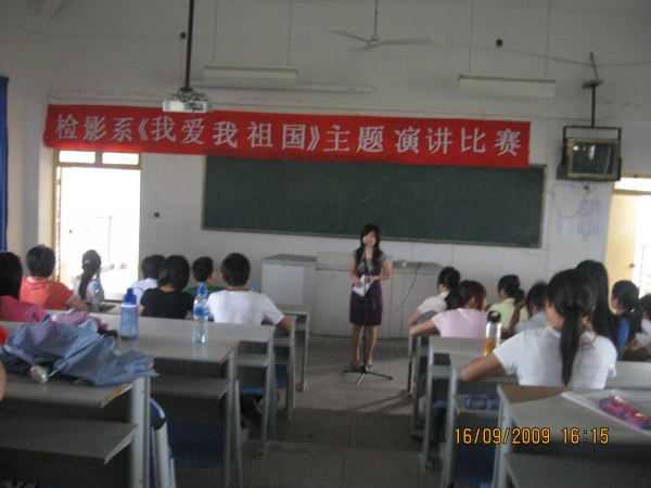 为了给中华人民共和国成立60周年献上最美好的祝福,同样也为了增加学生的爱国情操,增强他们的爱国意识,检验影像系于2009年9月17日在系部第二阶梯教室举行“我爱我的祖国”演讲比赛。