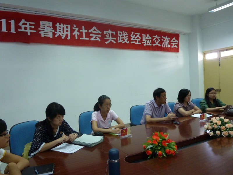 2011年9月28日下午,医学技术系团总支在系部会议室举办了“2011年暑期社会实践经验交流会”,医学技术系党总支副书记洪聿荣、医学技术系团总支书记黄小芳以及两位辅导员出席了此次大会,参加此次交流会的同学都是我系各团支部推荐的暑期社会实践先进个人候选人,会议由系团总支书记黄小芳主持。
