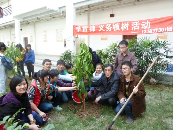 在一年一度全国“植树节”到来之际,为提高大家义务植树的意识,结合本月系团总支的“学雷锋”主题, 12放疗301团支部组织全体团员于医学技术系草坪开展了以“学雷锋义务植树”为主题的团日活动。