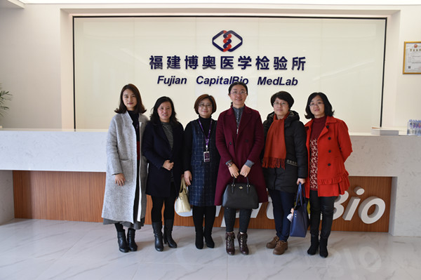 2017年3月1日,医学技术系黄铭珊书记、魏碧娜副主任、柯琼莺副书记和生物化学教研室彭臻菲老师前往福建博奥医学检验所参观交流。福建博奥医学检验所是由清华大学旗下的北京博奥医学检验所与福建广生堂药业股份有限公司、福建省临床检验中心共同出资设立,以基因检测为主营业务的第三方医学检验机构,于2016年3月获国家发改委批准承建国家(福建)基因检测技术应用示范中心。目前,已建立遗传性耳聋基因检测实验室,实现新生儿遗传性耳聋基因高通量筛查,并致力于推广出生缺陷及遗传性疾病、肿瘤、心脑血管疾病、遗传代谢性疾病、感染性疾病等重大疾病的分子检测服 务。