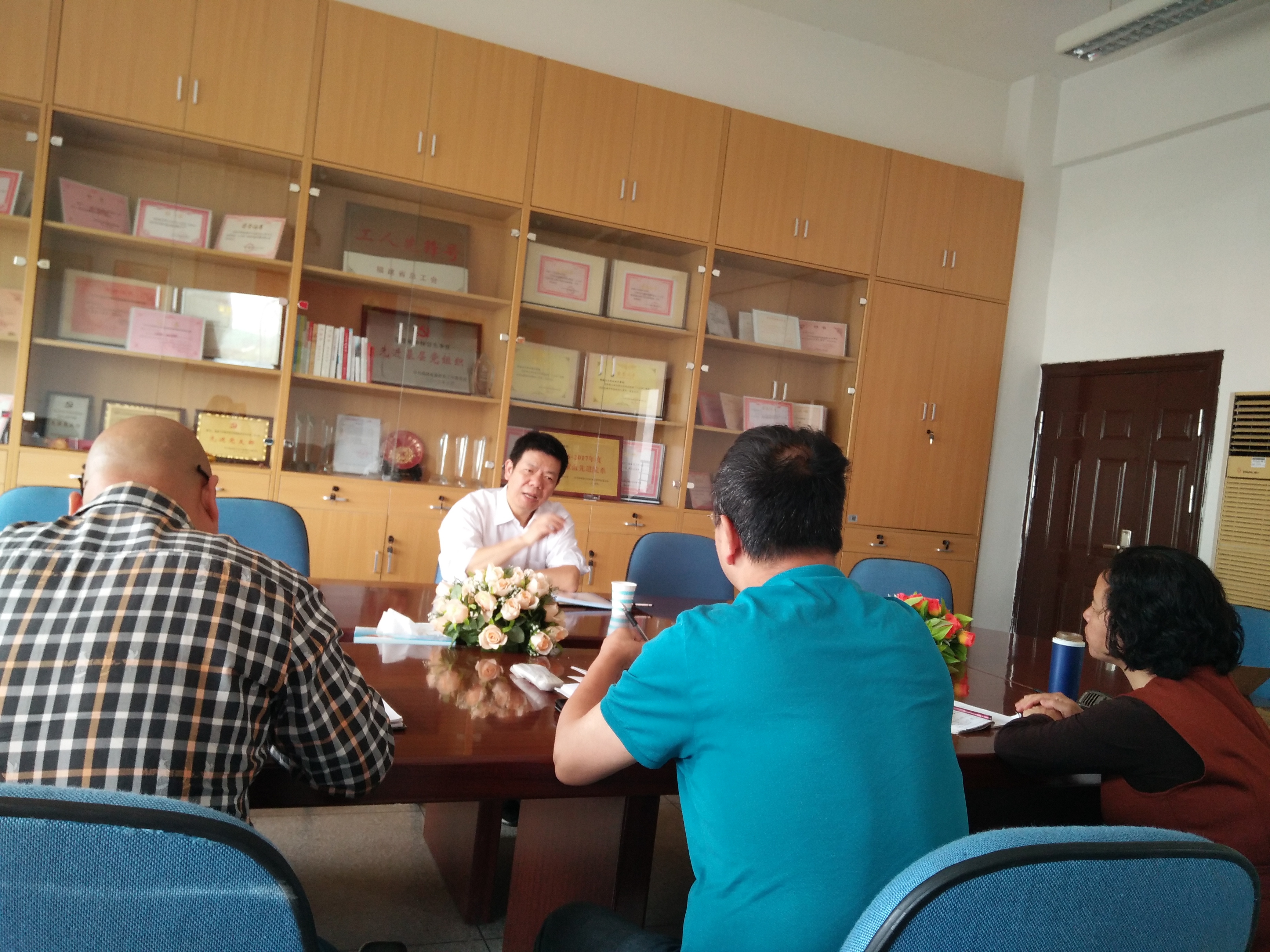 4月26日上午,学院林建团副书记深入联系系部,与医学技术系翁绳和主任、邱滚忠副书记、魏碧娜副主任开展座谈会和谈心谈话。