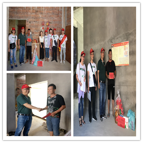 慰问走访过程中,志愿者们在老师的带领下前往各个贫困户的家中,送去学校募捐的专项爱心款项以及牛奶、纸巾等生活必需品和防暑降温常用药品,同时鼓励他们要坚定生活的信心,勇敢面对生活。