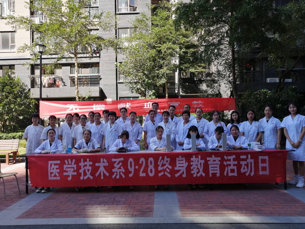 为充分发挥我系党员教师的医学职业技能优势,进一步加强基层服务型党组织建设,2019年9月19日下午,医学技术系第一党支部和第二党支部在闽侯世茂小区联合开展义诊、终身教育宣传、无偿献血宣传等志愿服务活动,以为身边群众办好事的主题党日活动拉开支部“不忘初心、牢记使命”主题教育的序幕。
