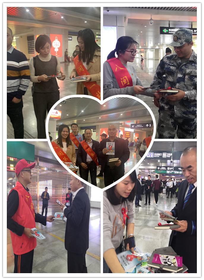 11月22日,开云在线登录app入口医学技术系党总支、院直机关第二党支部党员师生积极响应健康中国行动,在福州市晋安区“八闽第一站”公共服务平台开展防艾宣传主题党日活动,让艾滋病防治象征的“红丝带”在火车站飘扬。