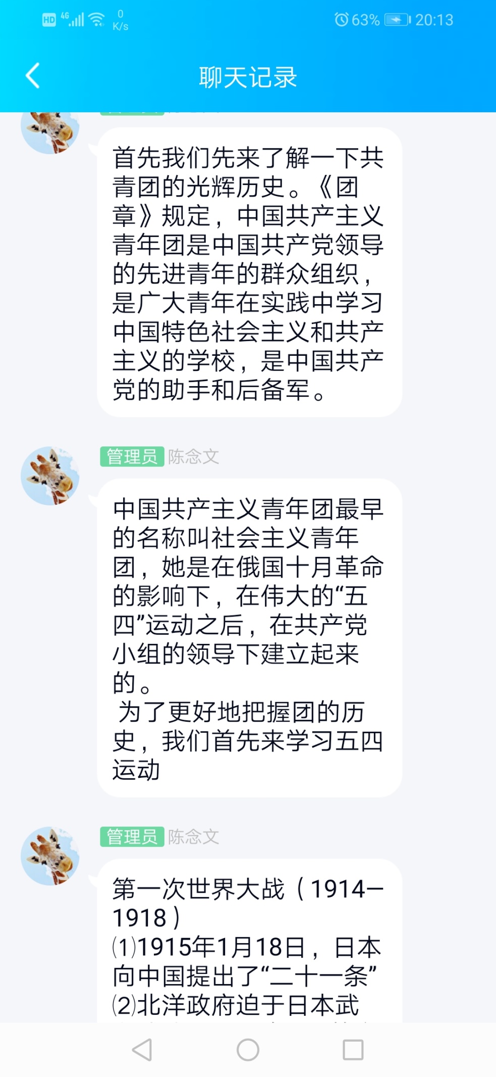 首先,陈念文老师为团员们讲述了共青团的光辉历史,并分享相关视频,就此视频同学们各抒己见。他们表示,共青团是青年组织,为社会的正常运转提供了有力的支持,回顾共青团历史,应当做一名有社会主义觉悟、有文化的劳动者,热爱祖国、忠于人民的共产主义事业的接班人。