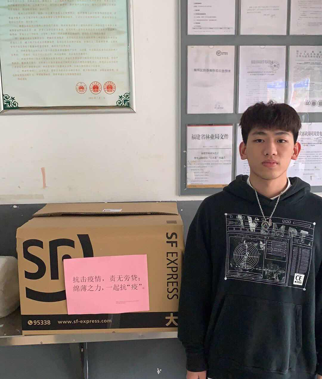经过多方努力,林杰找到了一家具有生产口罩资质的正规厂家,并说服工厂接收定制口罩的请求。他联系了支部党员老师,表达了向学校寄送口罩的想法。老师表扬了他的热心,但也担忧他作为学生怎么解决经费问题。他却很坚定地表示自己勤工俭学攒下了一些积蓄,可以量力而行,况且家长也很支持。就这样,林杰定下了1500份口罩,一份暖心满满的“礼物”寄到了学校。