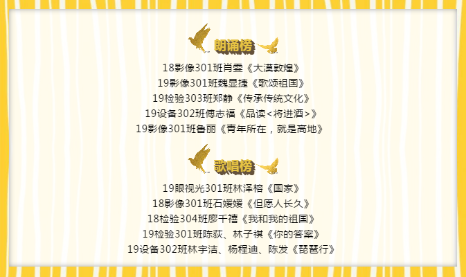 此次活动采取线上的朗诵和歌唱两种形式的作品参赛。在活动过程中,全系同学积极参与。在作品中,每一位同学都认真对待,饱含热情,表现出对中华经典的热忱。同时,也感受到同学们声音里凝聚着独具特色的语言文字、精彩纷呈的文学艺术以及中华传统文化!经过系部各方面的综合评选和激烈的角逐后,最终朗诵和歌唱分别择优选出5个优秀作品。